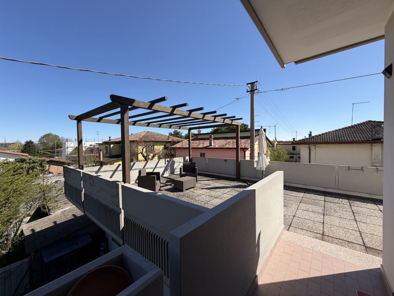 Campagnola di BRUGINE – APPARTAMENTO sviluppato in 2 piani con terrazzo, così composto: al piano primo si accede alla zona giorno open space con accesso al terrazzo e al bagno finestrato con doccia; al piano secondo troviamo camera matrimoniale, camera singola (entrambe con accesso al poggiolo) e secondo bagno finestrato (con vasca). Magazzino/ripostiglio di 30 mq al piano interrato + porzione di garage per un'auto. ARREDATO SOLO DI CUCINA.