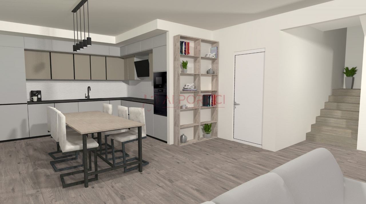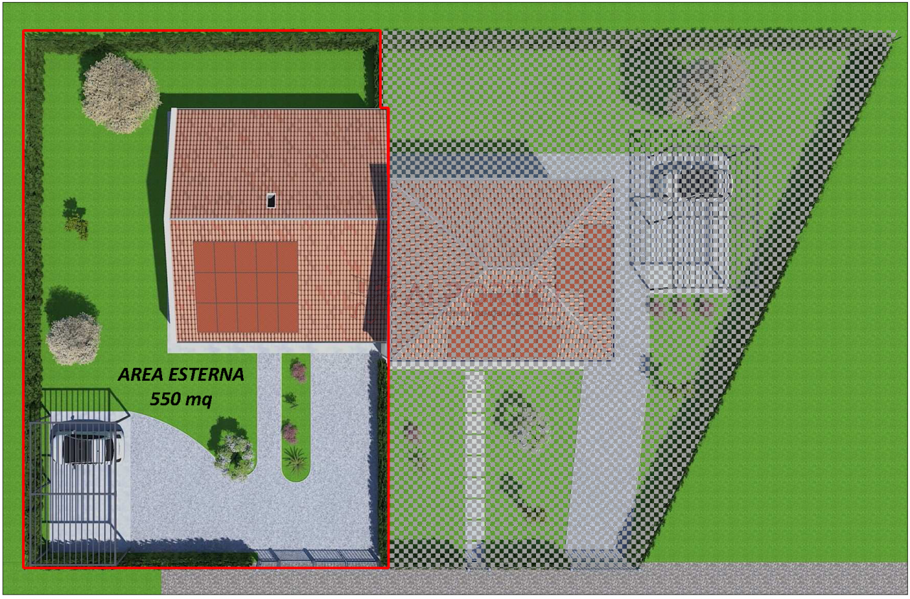 BRUGINE - Porzione di BIFAMILIARE sviluppata interamente al piano terra con spazio esterno di 550 mq completo di due comodi porticati per godersi pranzi all'aperto durante le belle giornate. La soluzione si compone di zona giorno open space di circa 40 mq. con accesso al porticato di 23 mq, 2 bagni, 2 camere matrimoniali (una delle quali con accesso al secondo porticato di 8 mq), una camera singola e garage comunicante (+ 2 posti auto esterni). L'immobile è dotato di apposita botola con scala retrattile per accedere alla soffitta.