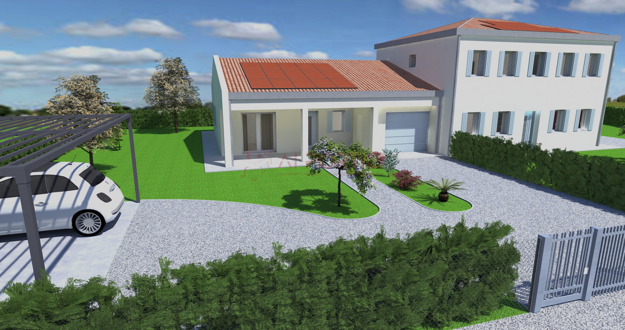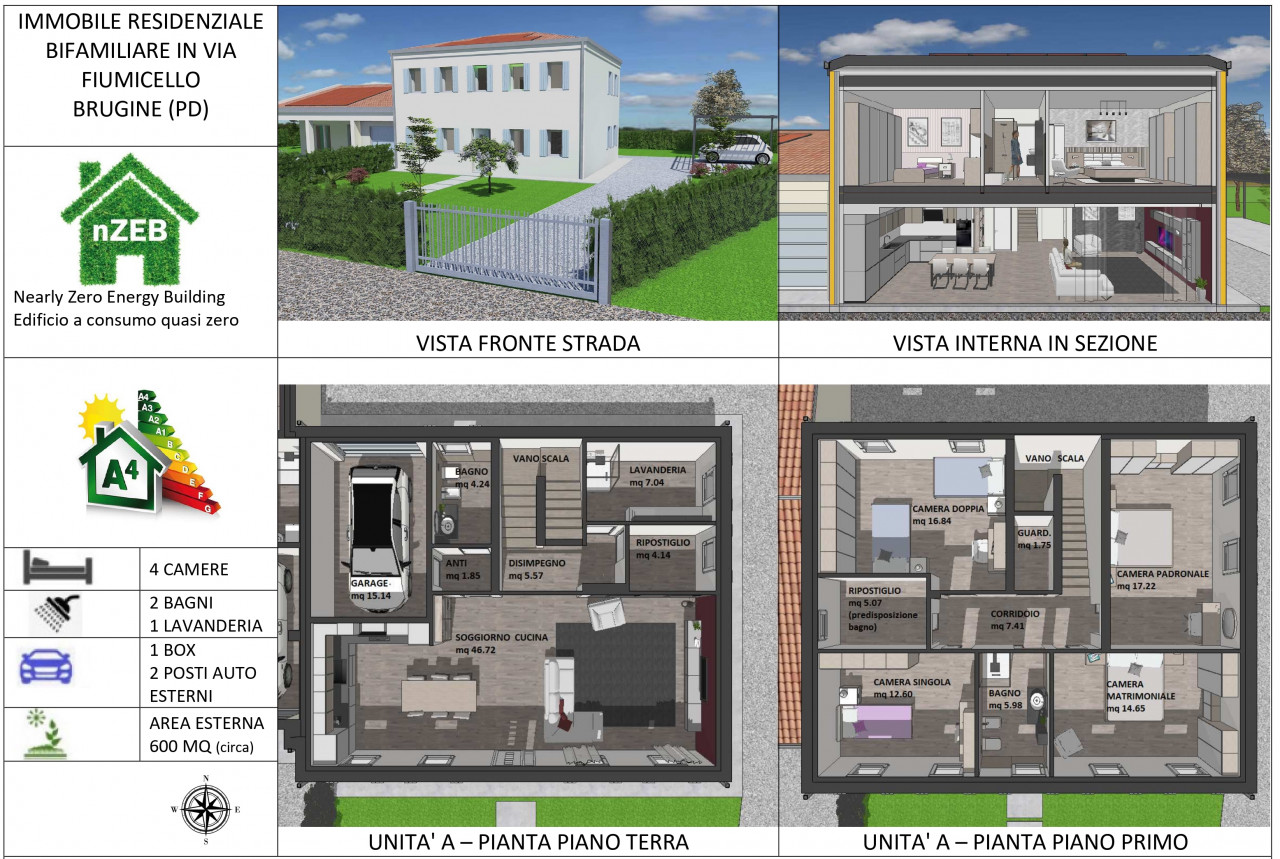 BRUGINE - Porzione di BIFAMILIARE sviluppata ai piani terra e primo, con spazio esterno di 600 mq. La soluzione è così composta: